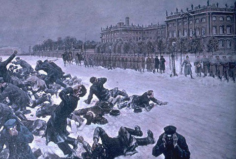 Il 3 gennaio 1905 scoppiò lo sciopero nelle officine Putilov. Alla tragica domenica 9-22 gennaio, in cui i dimostranti trascinati inermi dal pope Gapon furono falciati dalla mitraglia ai cancelli del palazzo imperiale, erano 150 mila gli scioperanti in Mosca.