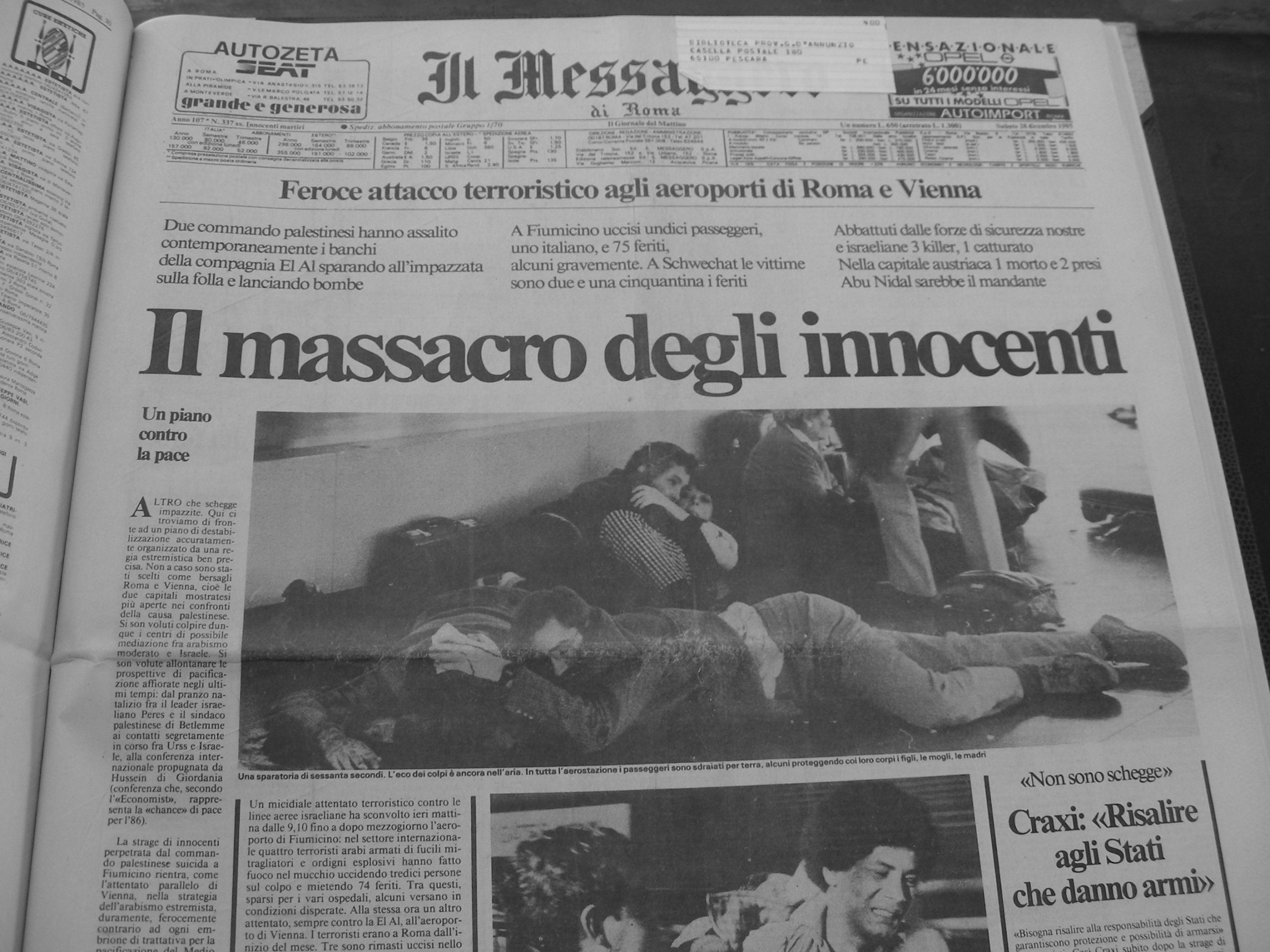 Il 17 dicembre 1973 alle ore 13:10, un commando terrorista palestinese composto tra le 6 e le 10 persone, fece irruzione all’interno del Terminal di Fiumicino. Gli uomini dopo aver estratto armi automatiche ed esplosivi dalle loro valigie, si sono fatti strada all’interno del Terminal fino alla pista sparando all’impazzata e uccidendo 2 persone. Raggiunta la zona di parcheggio dell’aeroporto, i terroristi si sono diretti verso il Boeing 707 della Pan Am, volo 110 per Teheran con scalo a Beirut delle 12.45, e vi gettarono all’interno due bombe al fosforo. Gli assistenti di volo tentarono di evacuare il velivolo il più velocemente possibile aprendo le uscite di emergenza sulle ali, dal momento che le altre erano ostacolate dai terroristi; molti passeggeri riuscirono a scappare, ma 30 rimasero uccisi. Tra questi quattro italiani: l’ing. Raffaele Narciso, il funzionario Alitalia Giuliano De Angelis, di ritorno alla sede di Teheran con la moglie Emma Zanghi e la loro figlia Monica di appena 9 anni. Nell’attacco perse inoltre la vita il militare ventenne della Guardia di Finanza Antonio Zara che, giunto per primo sul luogo dell’assalto, tentò di contrastare i dirottatori.