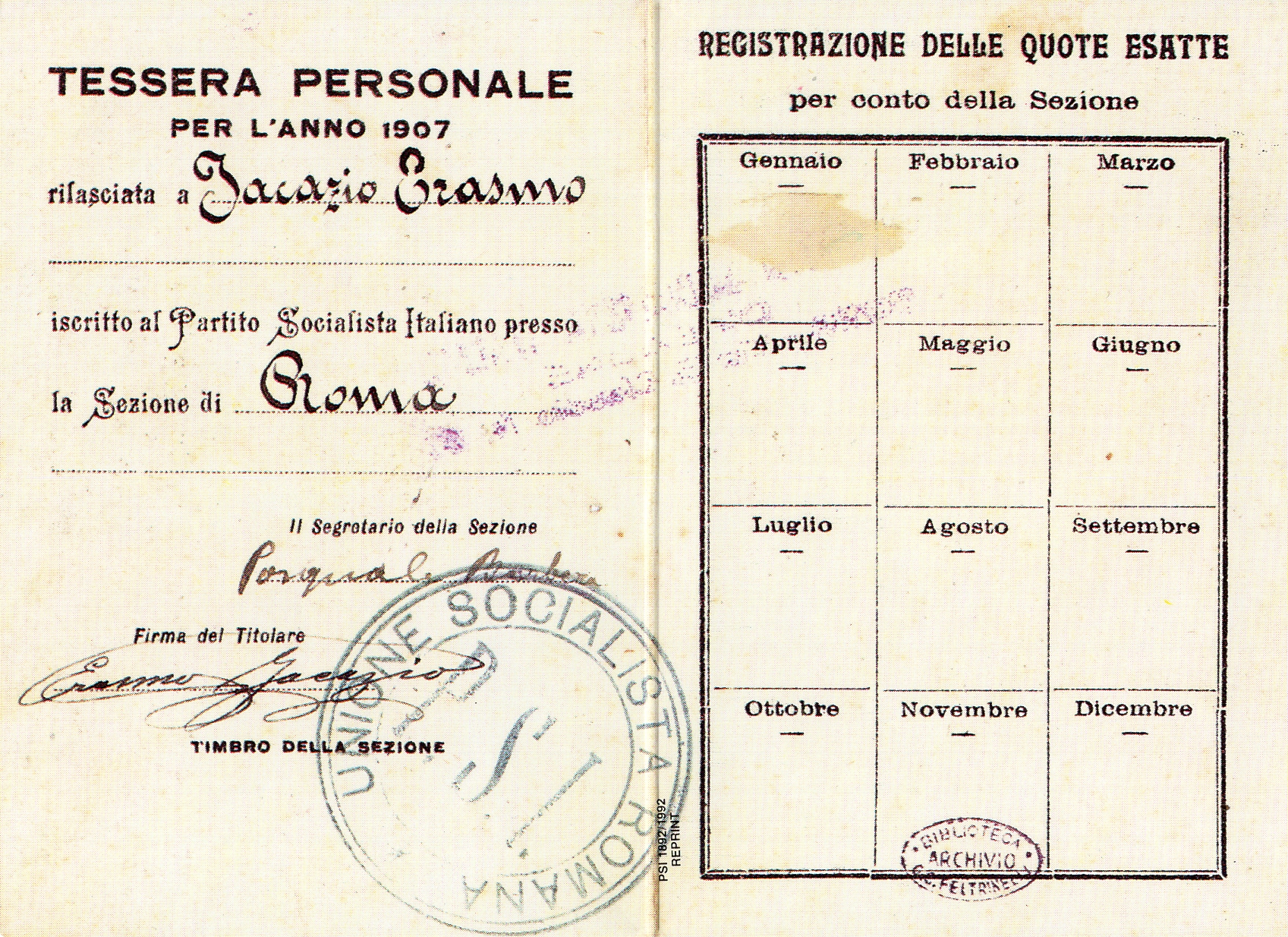 [FONTE: REPRINT delle tessere del PSI – Cento Anni di Tessere Socialiste, Edizioni Argomenti – Edar Libri – Roma]